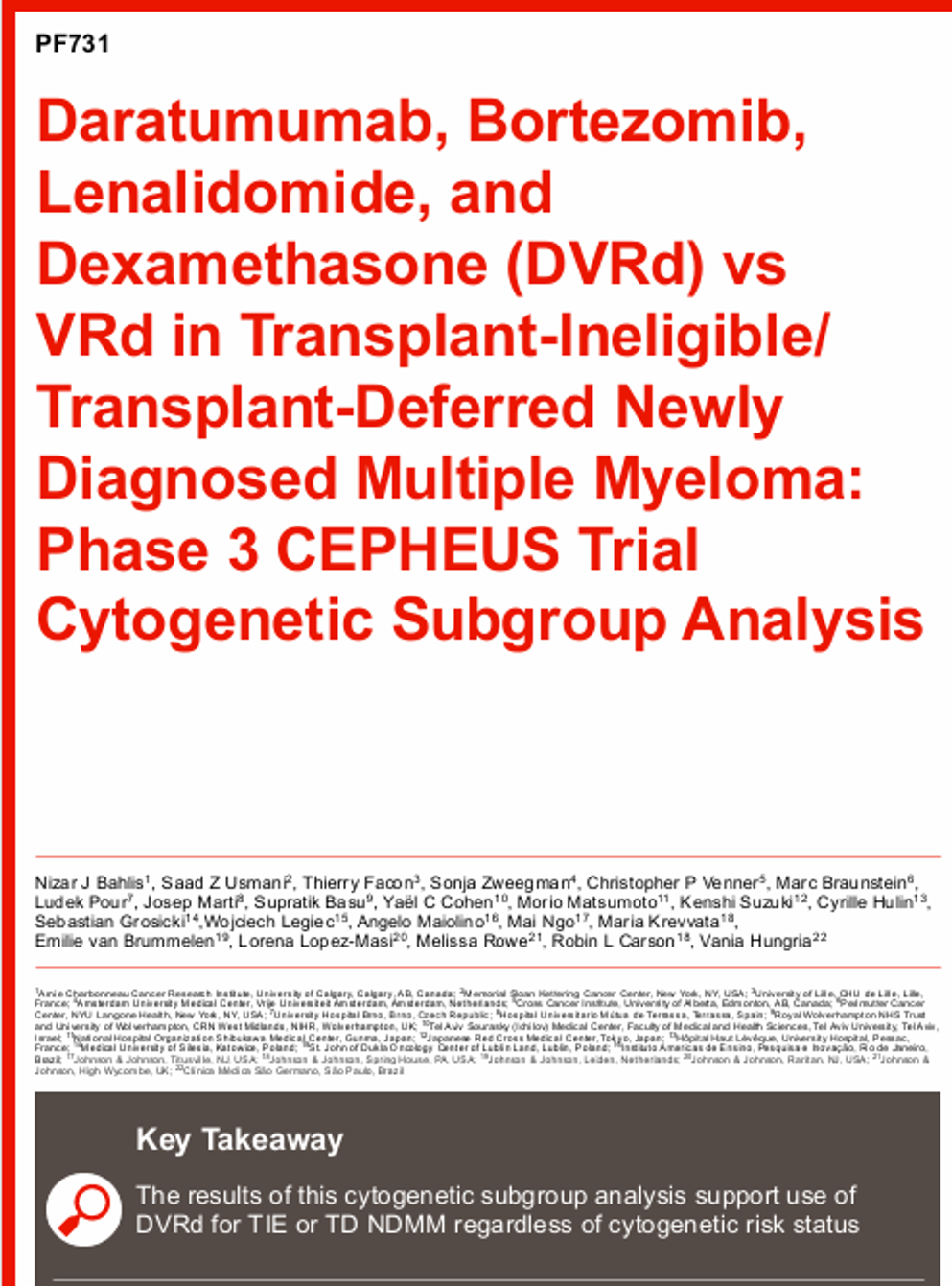 Daratumumab, Bortezomib, Lenalidomide, and Dexamethasone (DVRd) vs Rd in Transplant-Ineligible/Transplant-Deferred Newly Diagnosed Multiple Myeloma: Phase 3 CEPHEUS Trial Cytogenetic Subgroup Analysis